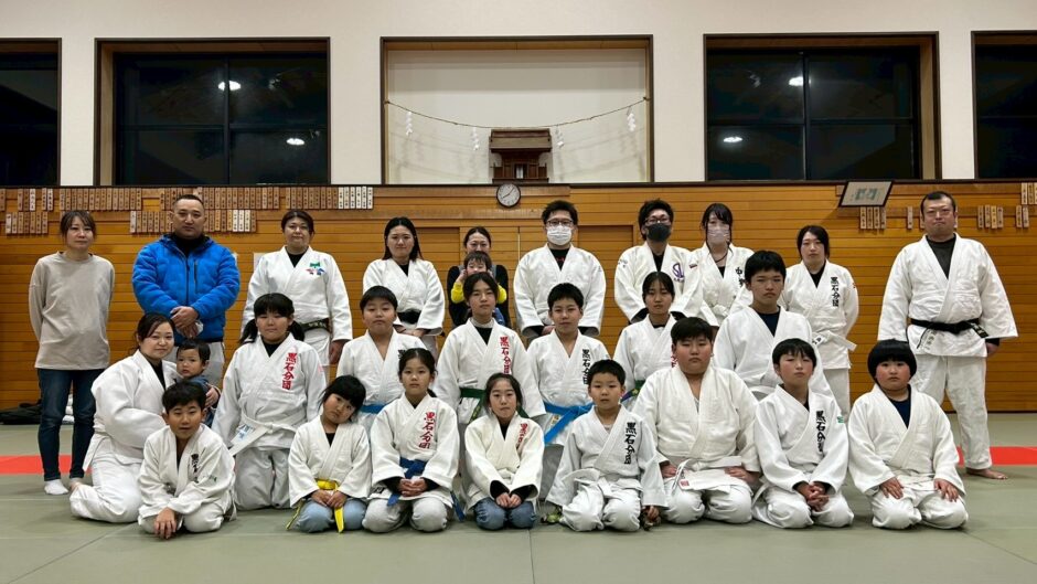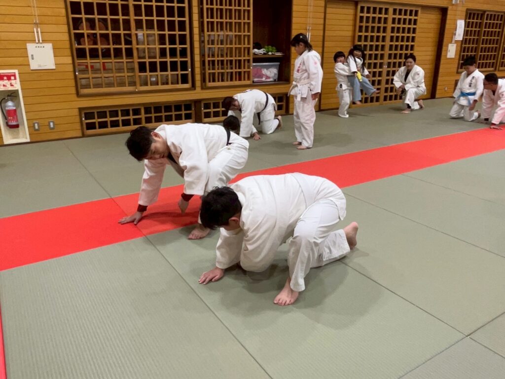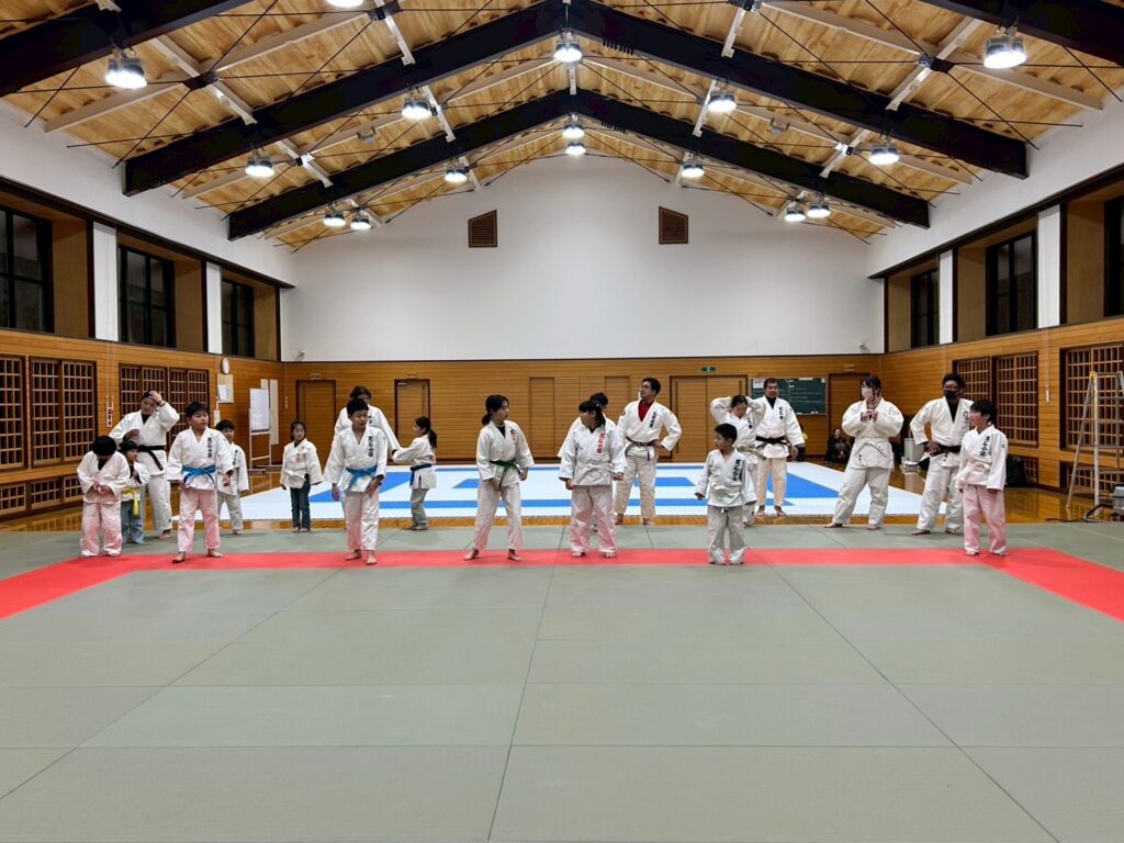 今年の稽古納めでは、保護者の皆さまにも柔道着を着用いただき、子どもたちと一緒に体操・回転運動・受け身・打込みなどを体験してもらいました。
