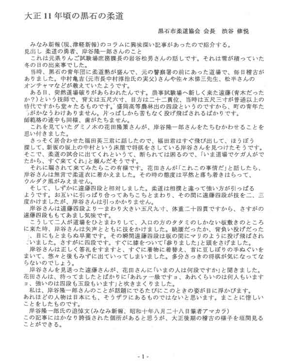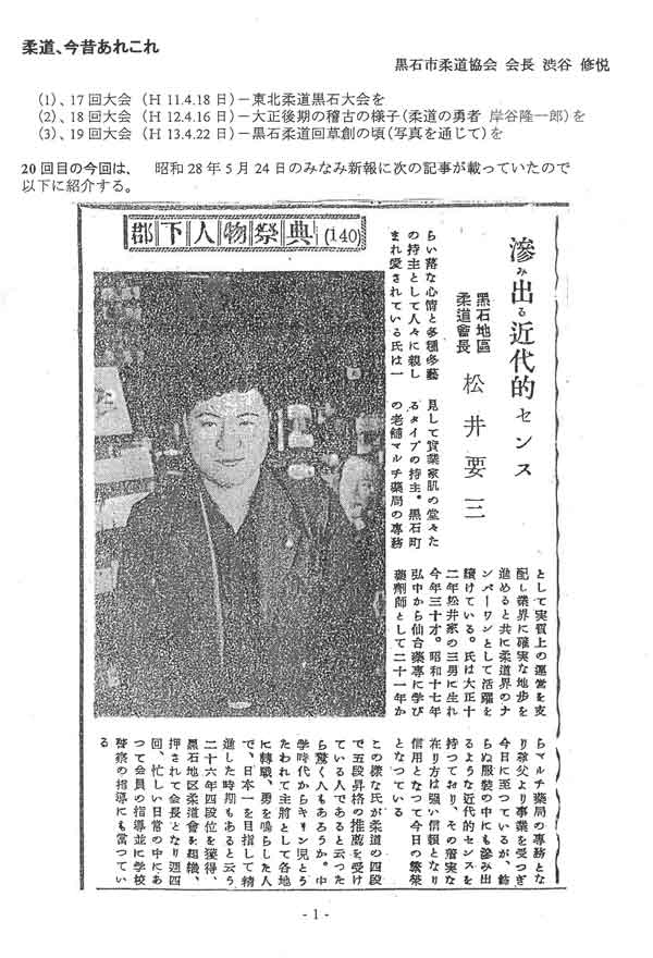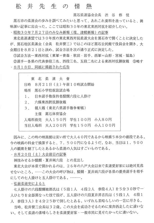 黒石市柔道協会名誉会長である渋谷修悦先生の寄稿をきっかけに、松井先生の遺産を後世に伝えるこの場を設けられたことを嬉しく思います。